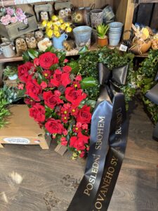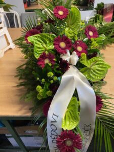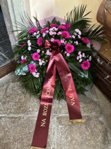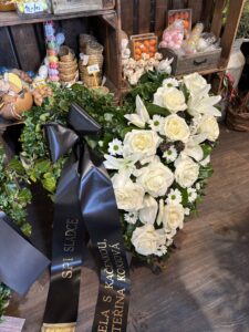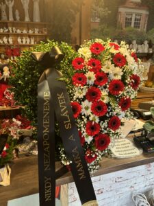 Můžete si objednat věnec, vypichovanou kytici i klasickou smuteční kytici dle Vašeho přání. Lze přidat stuhu ve volitelných barvách s Vaším textem.